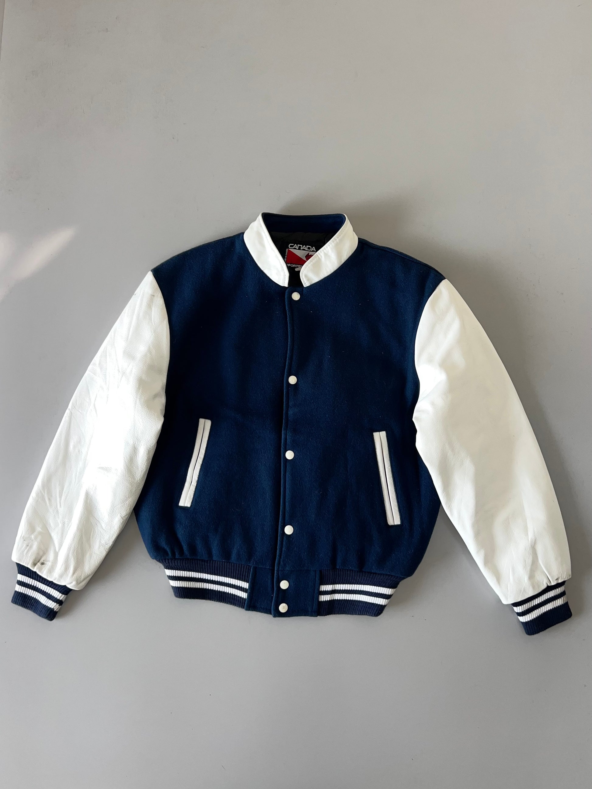 ZSuper Premium Minimal Varsity Jacket Original Leather Sleeves (M)